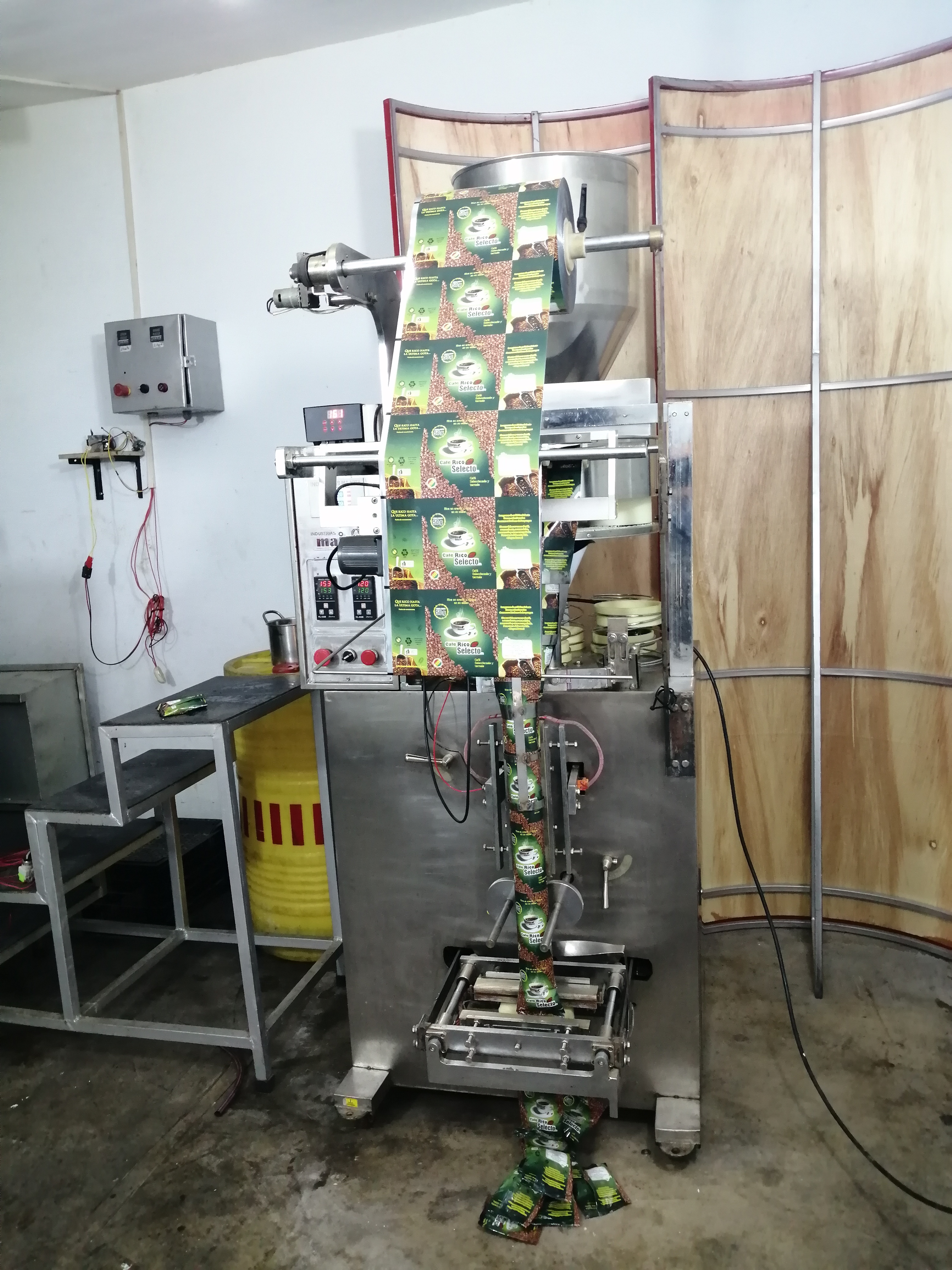 Description: esta maquina envasadora de harinas o sacheteadora es totalmente automatica y puede envasar desde 250g; 500g; 1Kg; 1,5Kg ; 2Kg..